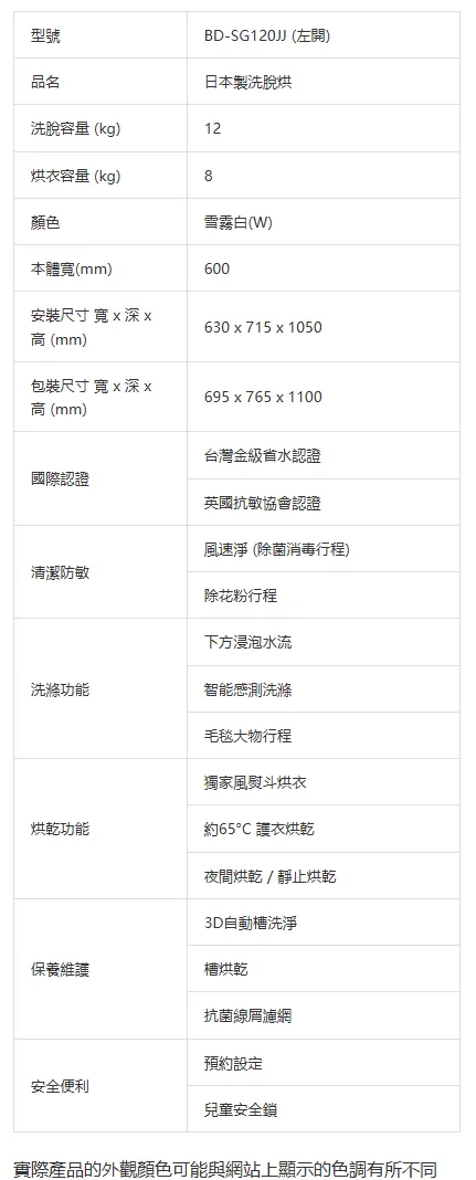 日立HITACHI日本製滾筒洗脫烘洗衣機BD-SG120JJ