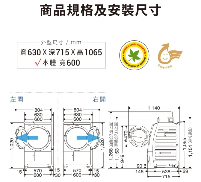 【日本製】滾筒洗衣機【洗脫烘】