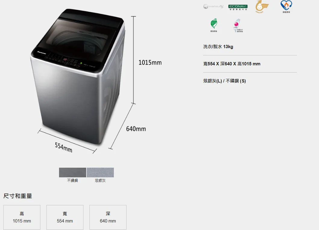 Panasonic 國際雙科技變頻直立式洗衣機NA-V130LBS