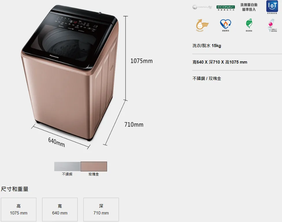 Panasonic 國際雙科技變頻直立溫水洗衣機 NA-V150NM-PN