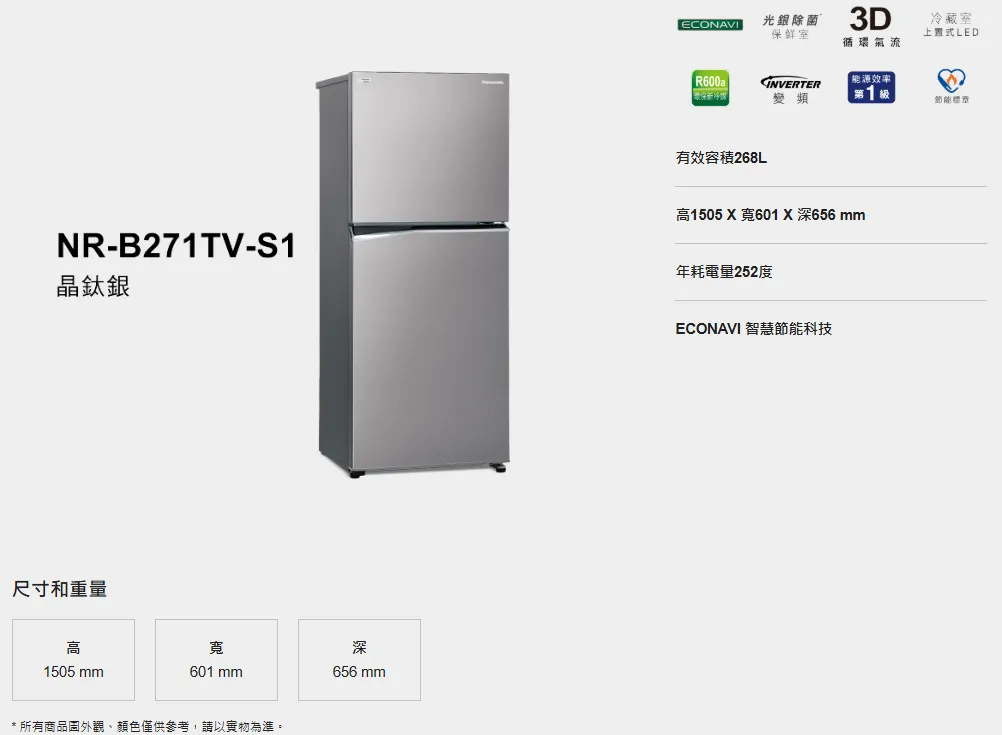 Panasonic 國際鋼板2門電冰箱NR-B271TV