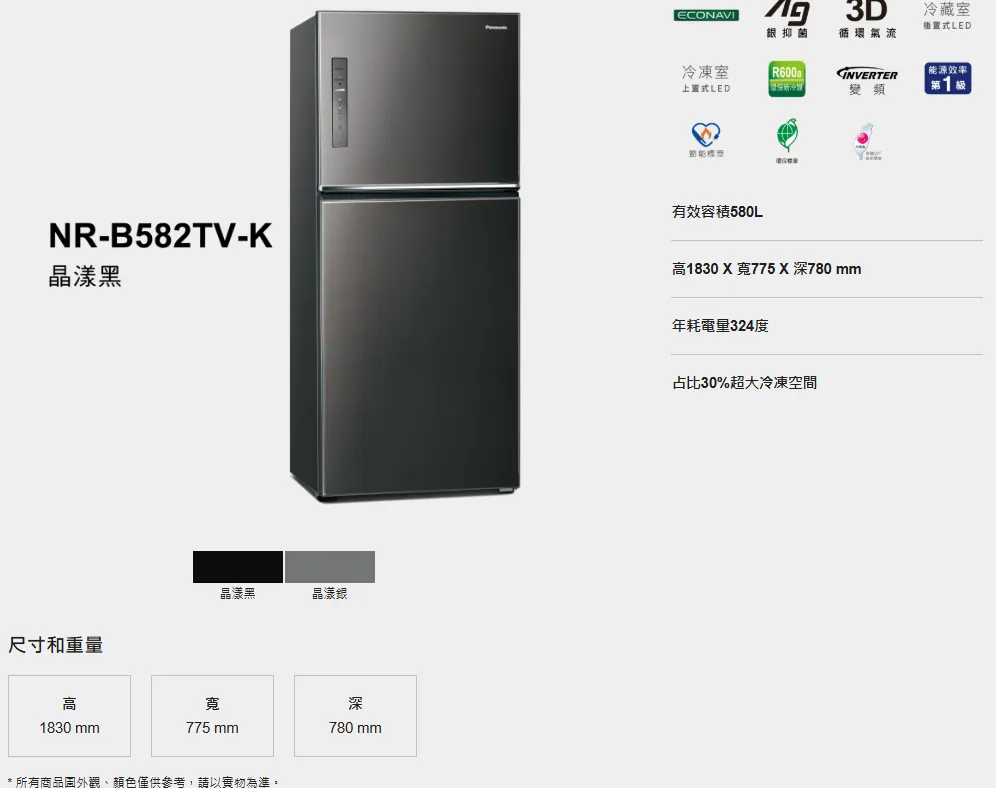 Panasonic 國際無邊框鋼板2門電冰箱 NR-B582TV