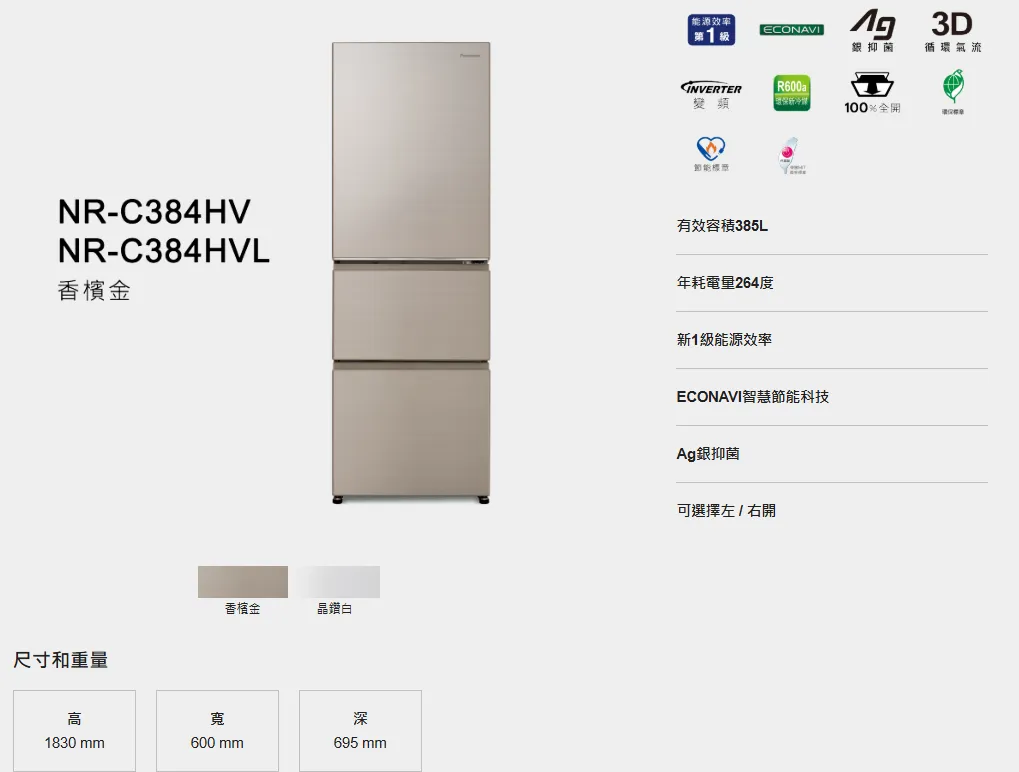 Panasonic 國際鋼板變頻3門電冰箱 NR-C384HV