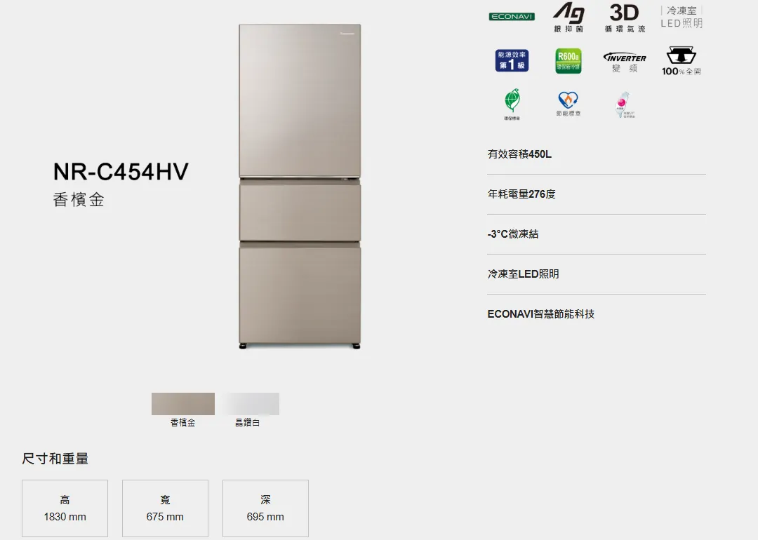 Panasonic 國際鋼板變頻3門電冰箱 NR-C454HV