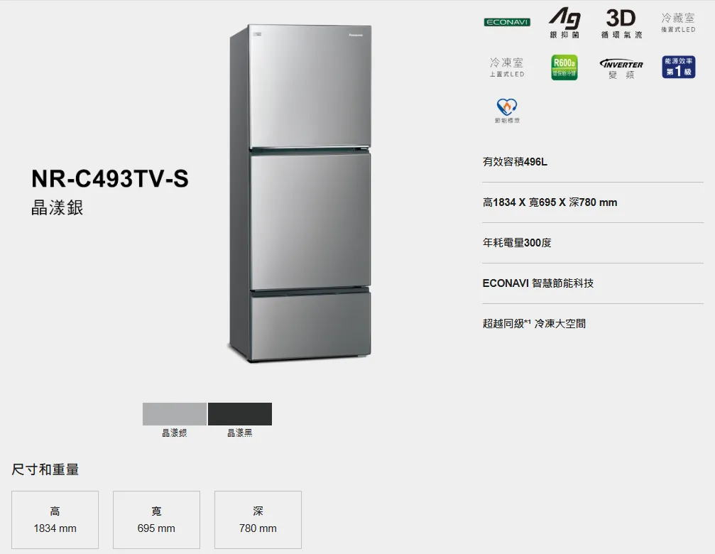 Panasonic 國際無邊框鋼板3門電冰箱 NR-C493TV