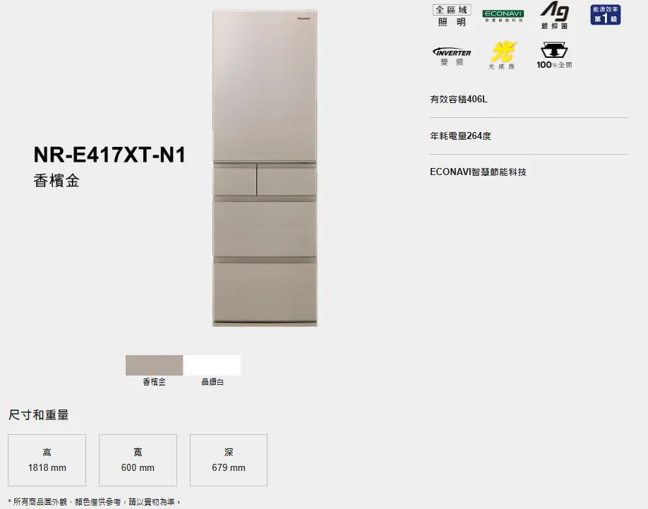Panasonic 國際日本製-平面鋼板5門電冰箱 NR-E417XT