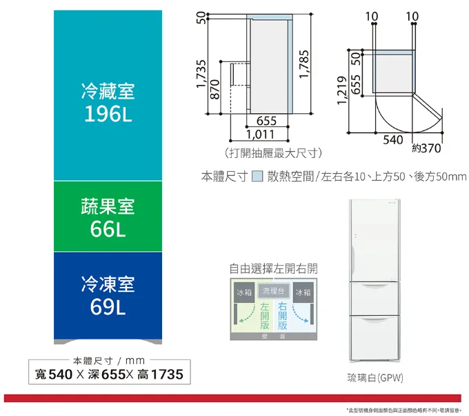 日立HITACHI三門冰箱琉璃左開特仕版 RG36BL-331L