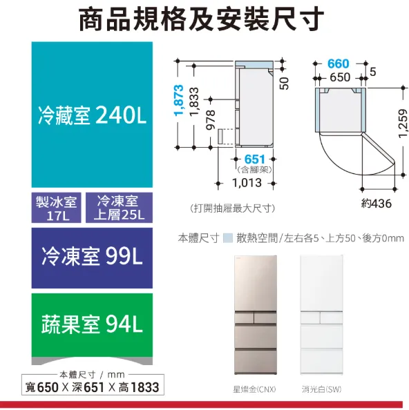 日立HITACHI日本製電冰箱-五門RHS49NJ-475L