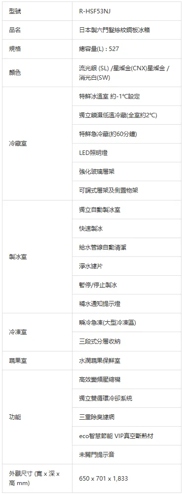 日立HITACHI日本製電冰箱-六門RHSF53NJ-527L