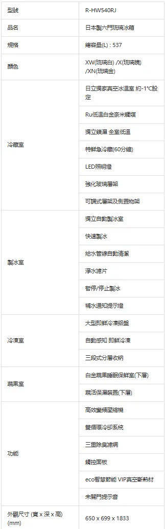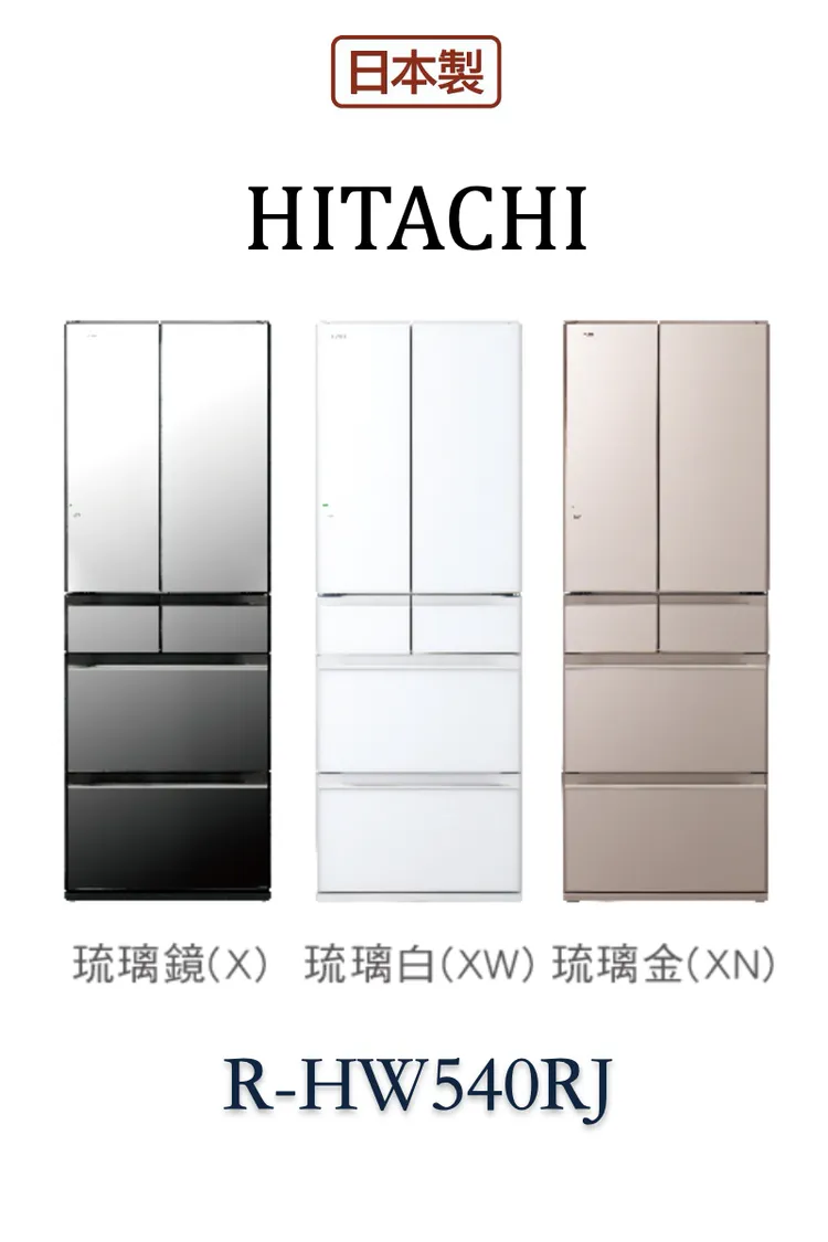 日立HITACHI日本製電冰箱-六門琉璃RHW540RJ-537L