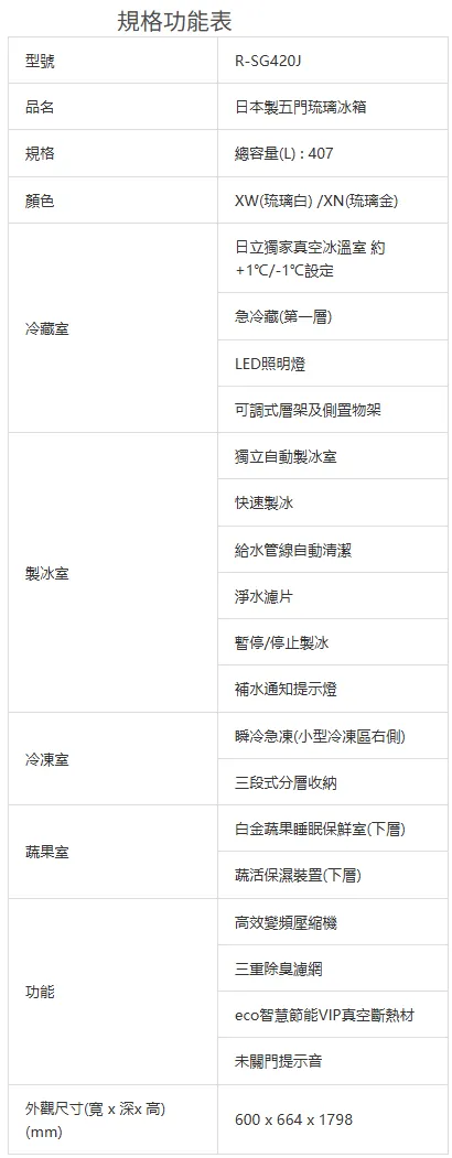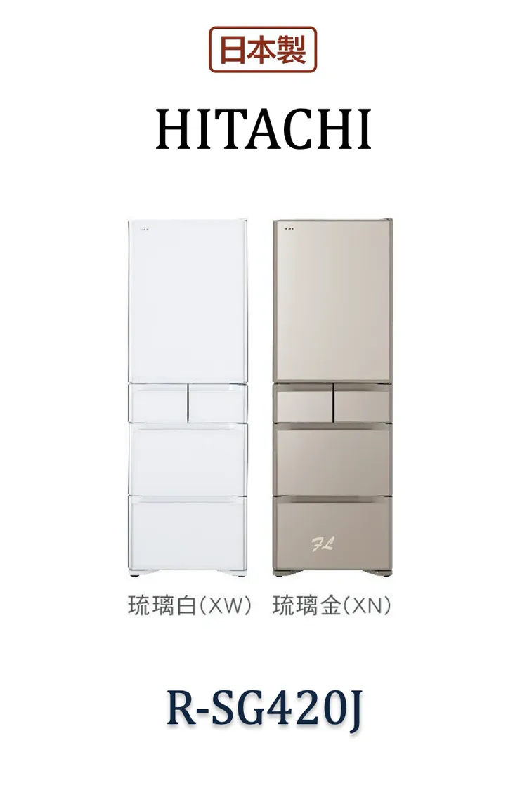 日立HITACHI日本製電冰箱-五門琉璃 RSG420J-407L