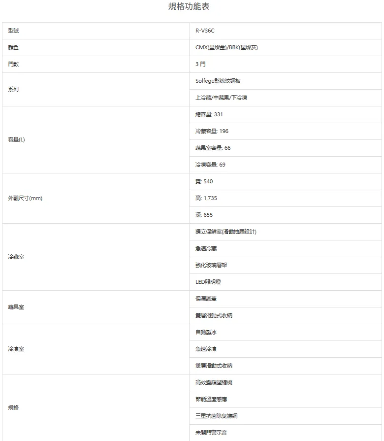 日立HITACHI三門冰箱 RV36C-331L