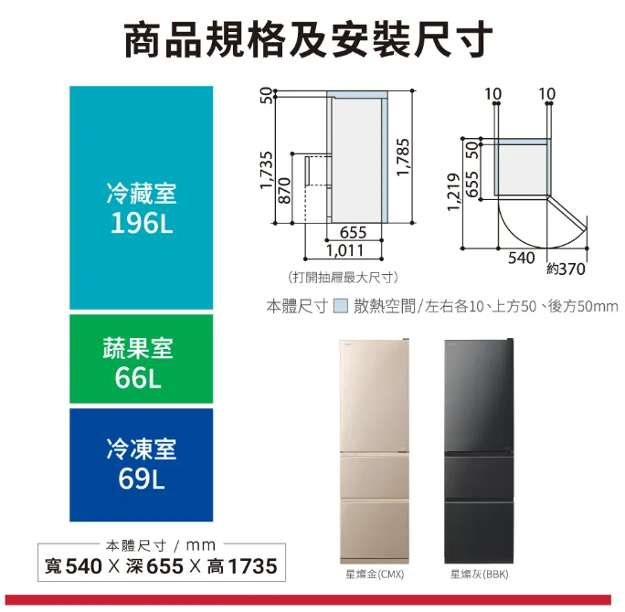 【日本製】五.六門冰箱
